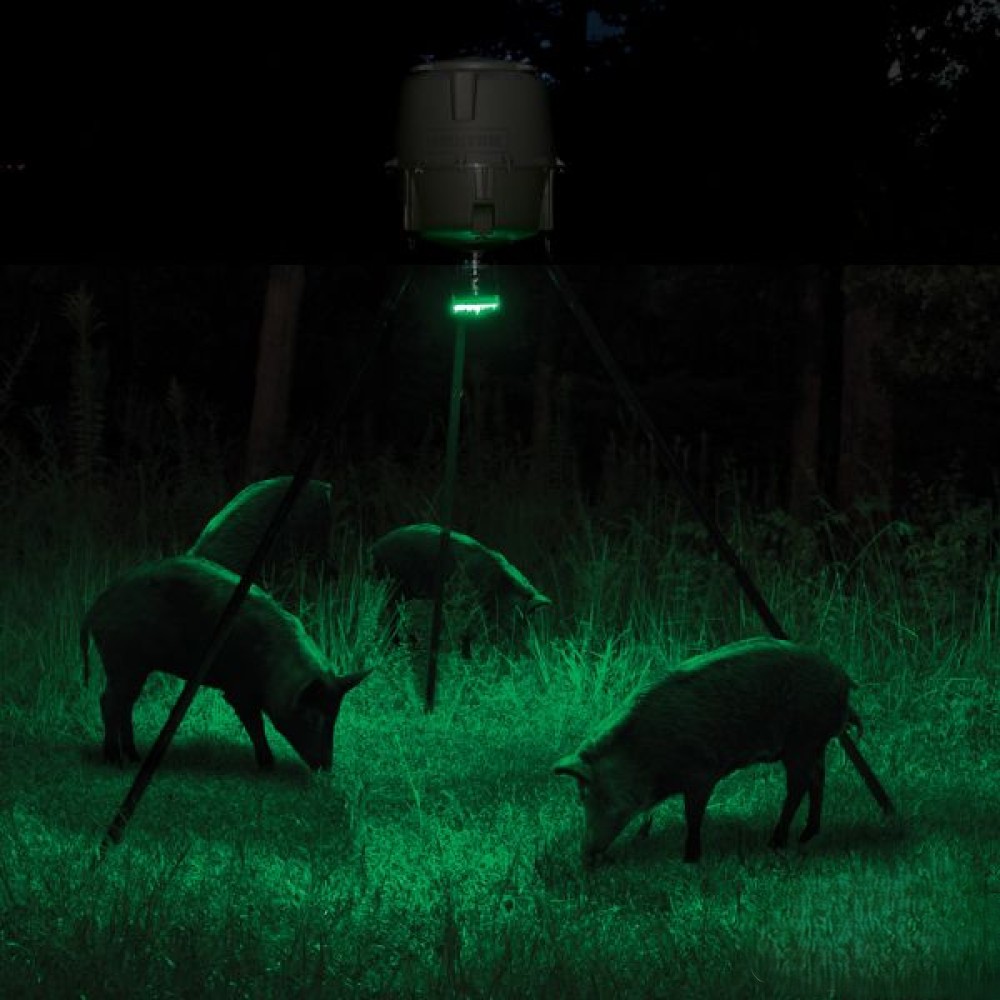 The Moultrie Feeder Hog Light is a powerful and reliable solution for night hunting and wildlife management. Designed with high-performance green LEDs, this feeder light illuminates up to 30 feet, allowing you to clearly spot hogs and other game animals in low-light conditions.